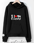 Polerón modelo canguro, con gorro y bolsillo frontal